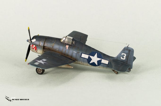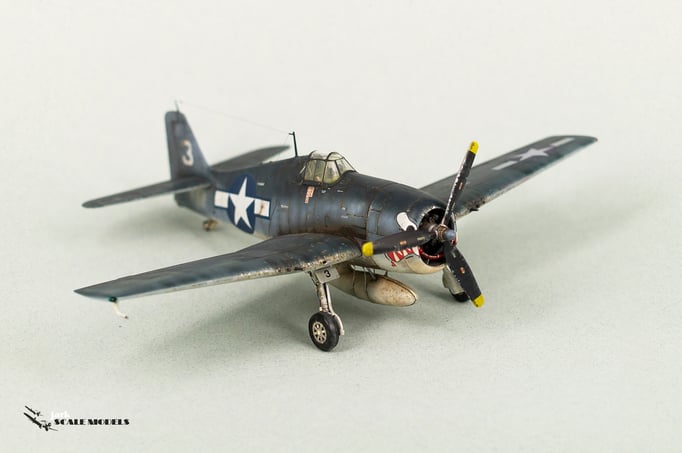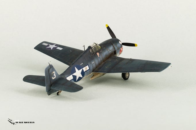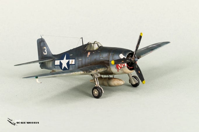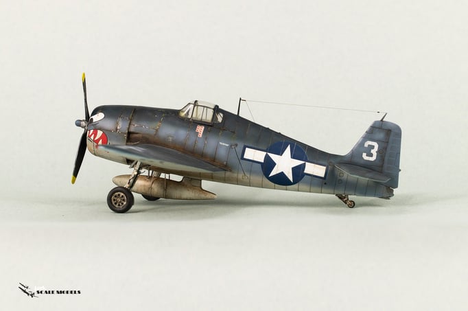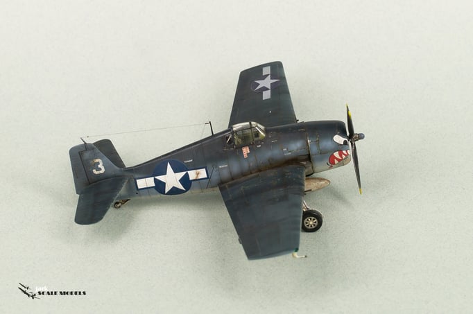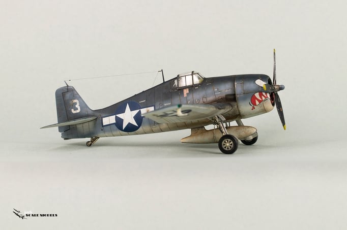Gordon Arthur Stanley, born on July 13th, 1921, in Seattle, Washington state, shot down 8 enemy airplanes in the course of World War Two, all achieved flying with VF-27. This unit became famous thanks to its unique marking - cat mouth and eyes, painted by Robert Burnell on all noses of the Hellcats belonging to this unit. Most of the Hellcats sporting the cat mouth with eyes was destroyed on October 24th, 1944, during the Battle of Leyte Gulf. The aircraft ended up on the ocean bottom together with Light Aircraft Carrier Princeton sunk by the single bomb launched from the D4Y Suisei (Judy) dive-bomber. Afterwards VF-27 operated from the board of CVL-22 Independence, however without the cat-mouth and eyes markings.