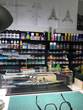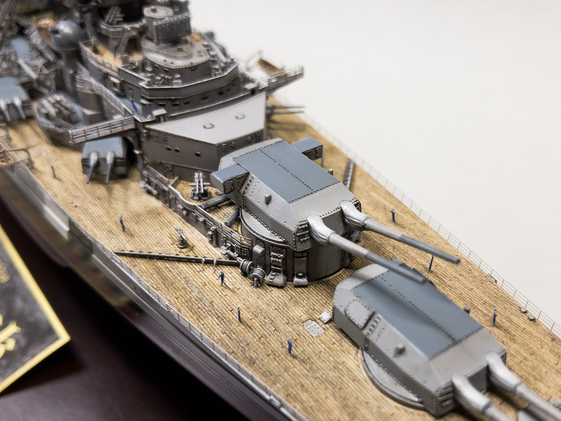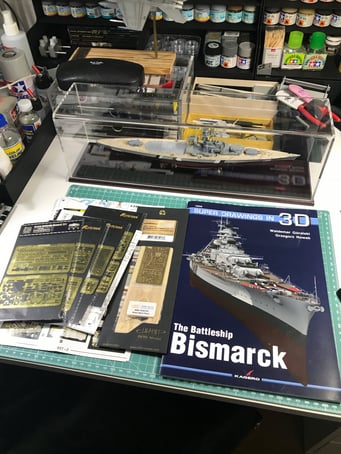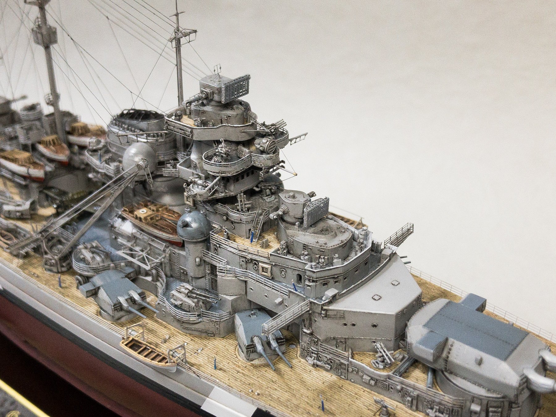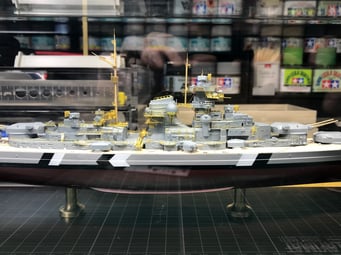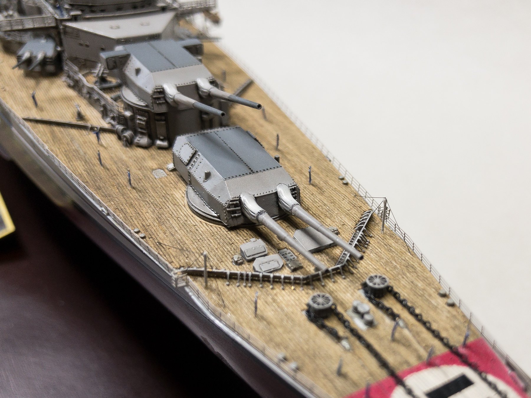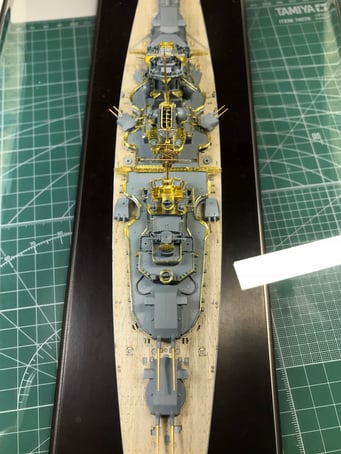 I chose to build it as seen on the 21 of May of 1941 when at the beginning of operation Rheinübung, Bismarck and Prinz Eugen stopped briefly in Grimstadfjord, southwest of Bergen in Norway. The baltic camouflage on the superstructure was no longer there but it is still visible on the hull with the sailor starting to paint it over.